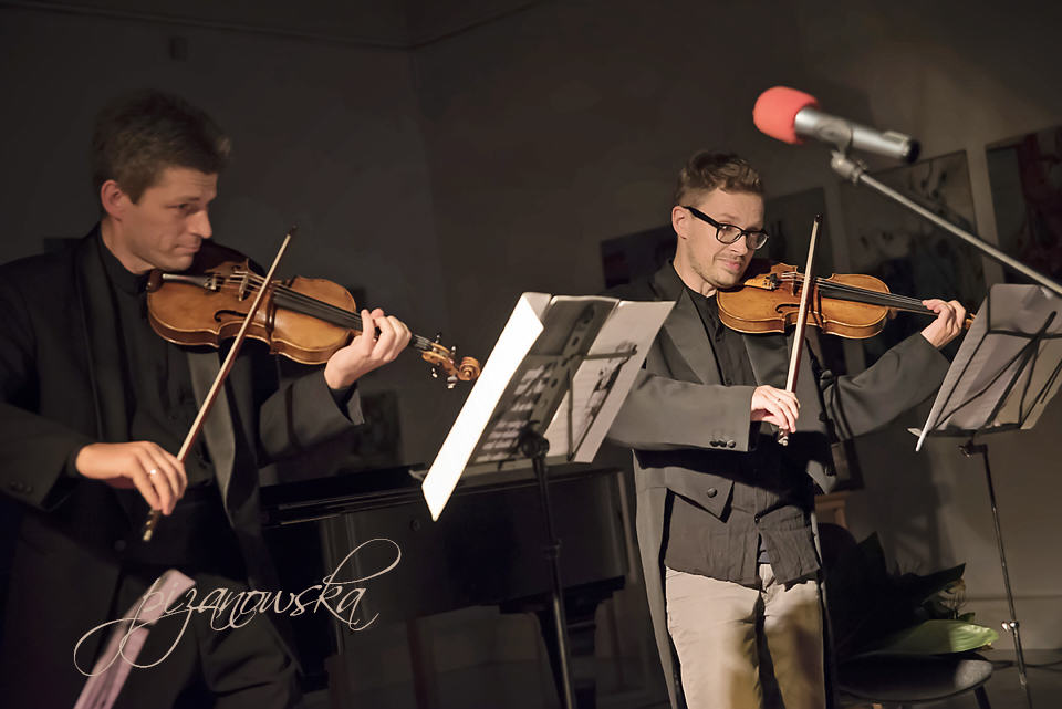 Ledwie wybrzmiały oklaski po przemówieniach inauguracyjnych, dyrektor artystyczny Akademii Szymon Krzeszowiec poszedł do „kulis” (mieszczących się chwilowo w małej salce galeryjnej) po skrzypce, a na estradzie pojawiła się Danuta Gwizdalanka, doktor muzykologii i znakomita popularyzatorka muzyki, która kapitalnie prowadziła koncert, mający się składać z dwóch sonat kompozytorów z dwóch krajów, sąsiadujących z Polską. Najpierw w wykonaniu Szymona Krzeszowca i pianisty Michała Sadzikowskiego z Akademii Muzycznej w Katowicach usłyszeliśmy krótką i bardzo skondensowaną muzycznie, czteroczęściową Sonatę na skrzypce i fortepian czeskiego kompozytora Leoša Janačka (1854-1928), napisaną w latach I wojny światowej, a wykonaną po raz pierwszy w 1922 r. Pierwsza część – Con moto wprowadziła nastrój liryczny w partii fortepianowej i kontrastujące z nią nerwowe frazy w partii skrzypcowej. Bardzo pięknie zabrzmiała romantyczna i melodyjna część druga – Ballada (z motywami folklorystycznymi), ale szczególnie wirtuozowskie było dwuminutowe zaledwie Allegretto, tworzące część trzecią. Czwarta część zostawiła publiczność w smutnym nastroju, z którego wygrzebywała nas Danuta Gwizdalanka, opowiadając o kompozytorze następnego dzieła, Sergiuszu Rachmaninowie (1873-1943), jego kłótni z Karolem Szymanowskim i pechowym prawykonaniu jego pierwszej symfonii przez orkiestrę, kierowaną przez pijanego w sztok dyrygenta, którym był mocny człowiek rosyjskiej muzyki, także kompozytor Aleksander Głazunow.